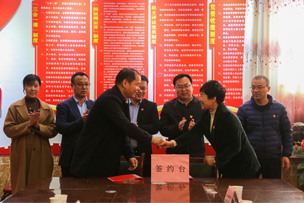 学院党委书记曹军会与全国人大代表、五丰社区党支部书记雷温芳签订《乡村振兴示范村帮扶协议》