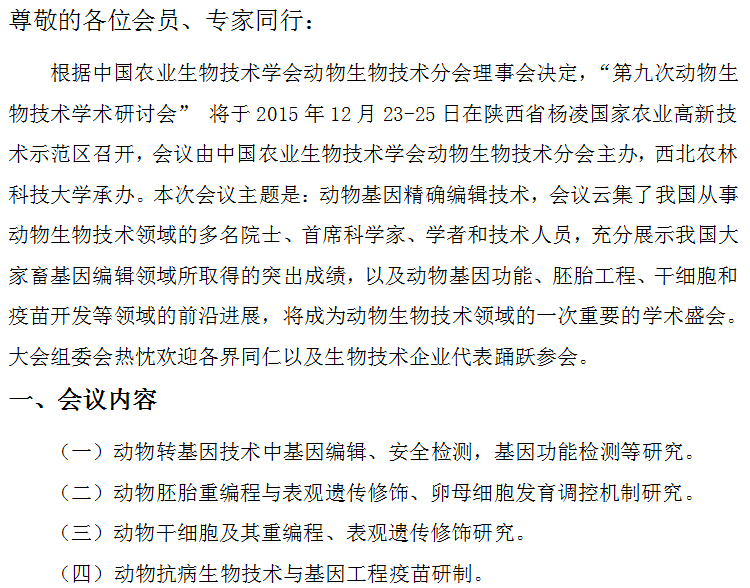 关于举办《第九次动物生物技术学术研讨会》第三轮通知