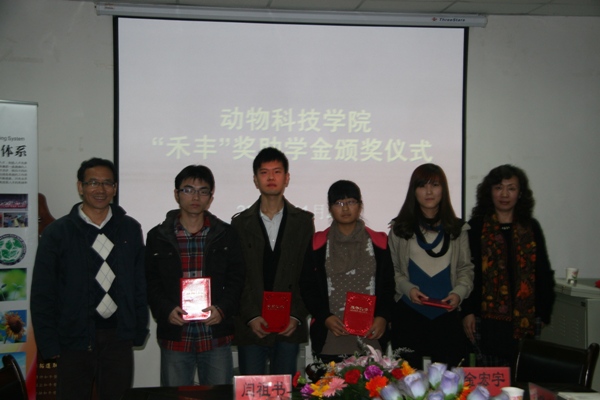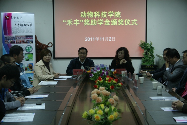 禾丰牧业股份有限公司是优秀国家级农业产业化重点龙头企业,是中国饲料工业协会副会长单位。在我院设立禾丰奖学金,分设神笔奖、自强不息大学生奖、外语学习标兵、优秀学生干部等九项奖项。每年奖学金金额两万元,每次奖励18名学生,先后共奖励优秀学生百余人。