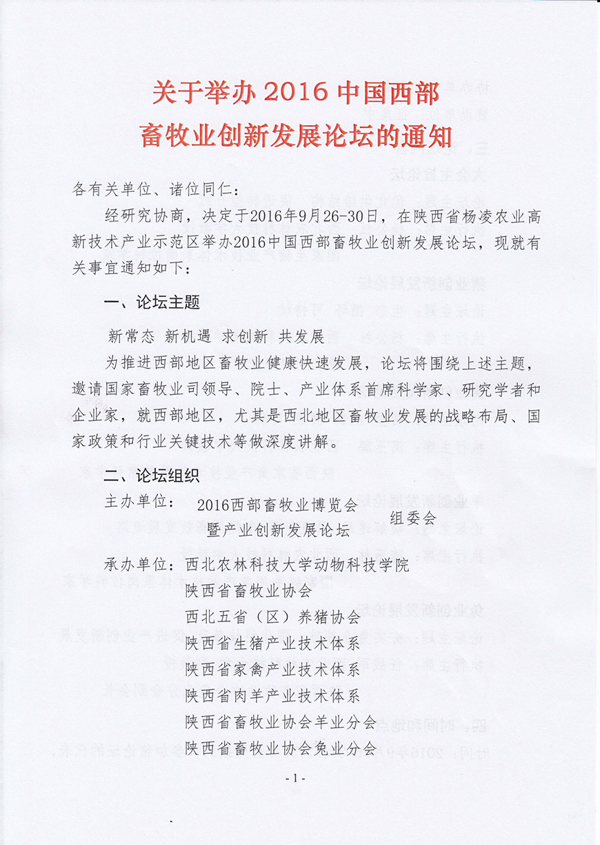 关于举办2016年中国西部畜牧业创新发展论坛的通知