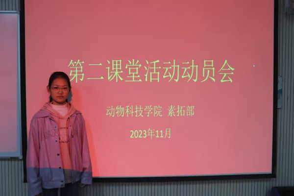 为号召学生积极报名参加第二课堂活动,以达到提升学生自身综合素质,2023年11月28日,西北农林科技大学动物科技学院素拓部组织开展了第二课堂活动动员会,意在通过此次会议讲解第二课堂活动对个人发展的重要性,鼓励学生积极参与第二课堂活动。