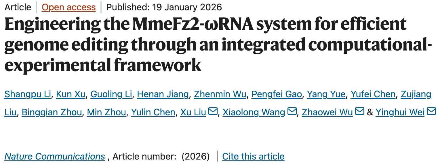 近日,我院羊遗传改良与生物育种创新团队联合上海科技大学等国内多家单位,在国际学术期刊《Nature Communications》在线发表了题为 “Engineering the MmeFz2-ωRNA system for efficient genome editing through an integrated computational-experimental framework”的研究论文。该研究采用“AlphaFold3辅助理性设计+EVOLVEpro驱动AI进化”的升级版工程化策略,成功开发出新型微型高效MmeFz2-ωRNA基因编辑系统,为未来精准基因治疗及动物生物育种研究提供了新的底盘工具。