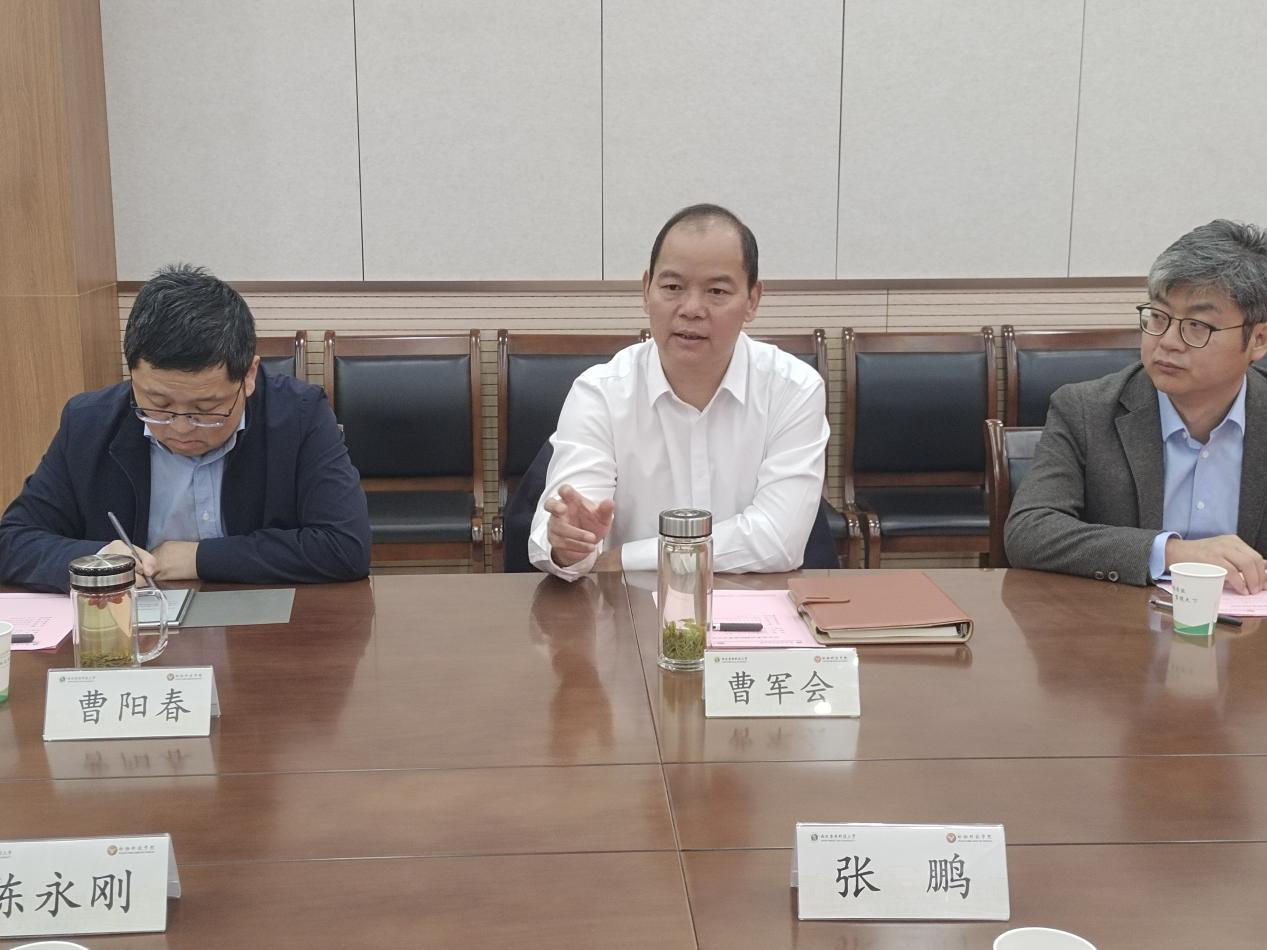 曹军会书记代表学院对张鹏书记一行的到来表示热烈欢迎,详细介绍了学院的师资队伍、人才培养、科学研究、社会服务和国际交流情况,他强调学院始终高度重视校地企合作,未来将进一步深化与民乐县的务实合作,积极引导教师、学生投身科技创新与产业创新融合发展实践,不断拓展校地、校企交流合作的广度与深度,加速科技成果转化应用,让更多的科技成果尽快转化为农业新质生产力。