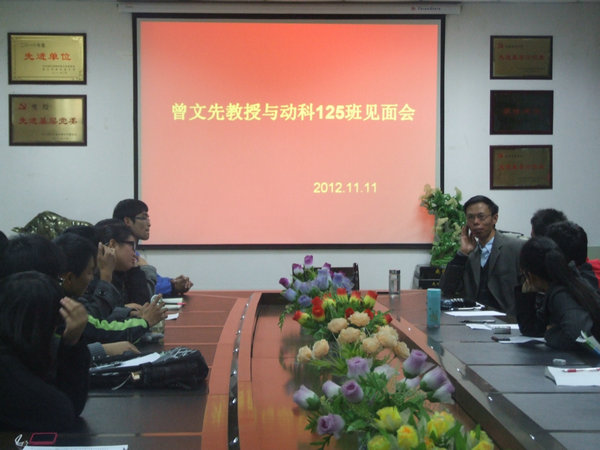 11月11日晚,我院在四号教学楼一层会议室举行动科125班与导师团见面会,我院动物生化与分子生物学教研组教授、博士生导师曾文先教授与同学们交流座谈。动科125班班主任李晓也参加了此次会议。 见面会一开始,曾文先教授与同学们亲切交谈,了解同学们开学以来生活、学习的各项情况。当了解到很多同学仍处于迷茫状态时,曾老师与同学们分享了他大学时如何树立理想信念、稳定专业思想的经历。他鼓励同学们树立明确的目标,不断激励自己勤奋刻苦的学习,从中获取动力。此外,曾老师还建议同学们在平时多加锻炼,用强健体魄投入到今后的学习工作中去。 在交流大学感受之余,曾文先教授还通过PPT介绍了他所研究的领域在国际前沿的发展情况,并启发性的解释了今年诺贝尔奖获得者山中伸弥的实验成果,并就实验中的具体步骤向同学们提出问题。同学们积极思考,踊跃回答,曾文先教授对同学们活跃的思维也表示赞赏。他希望同学们在学习知识时不要一味的去接受,要用批判的眼光看待问题,敢于质疑,敢于创新,这样才具备一个科研工作者的基本素质,才能推动科技的进步与发展。 此次见面会不仅让同学们对曾老师所研究的领域产生了浓厚的兴趣,加深了同学们对动科专业的认识,更让同学们感受到了学院领导和老师对本科生培养的关怀与期待。同学们纷纷表示曾文先教授的座谈对自己的启发很大,今后会珍惜时光、摒弃杂念、刻苦学习,力争到曾老师及其他优秀老师的门下继续深造。