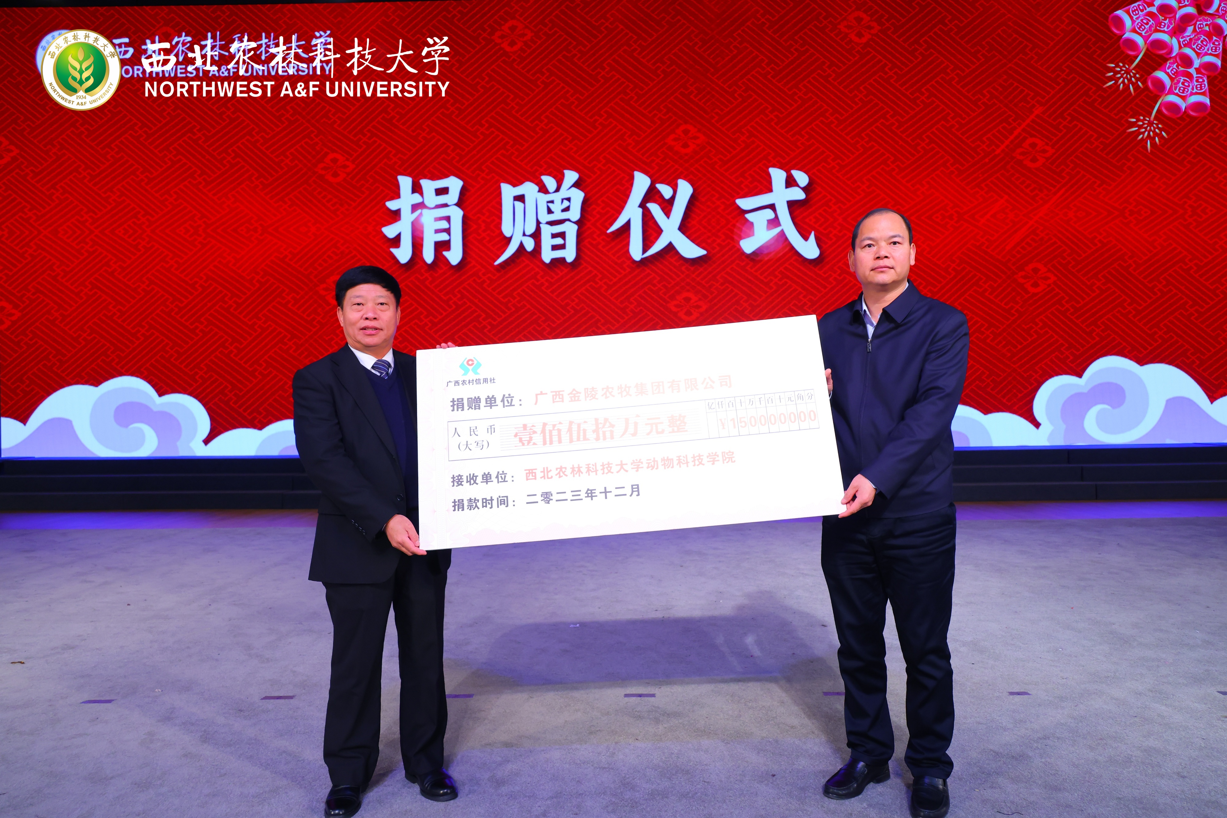 金陵农牧集团有限公司行政总经理陈维荣先生代表黄雄董事长向学校捐赠150万元