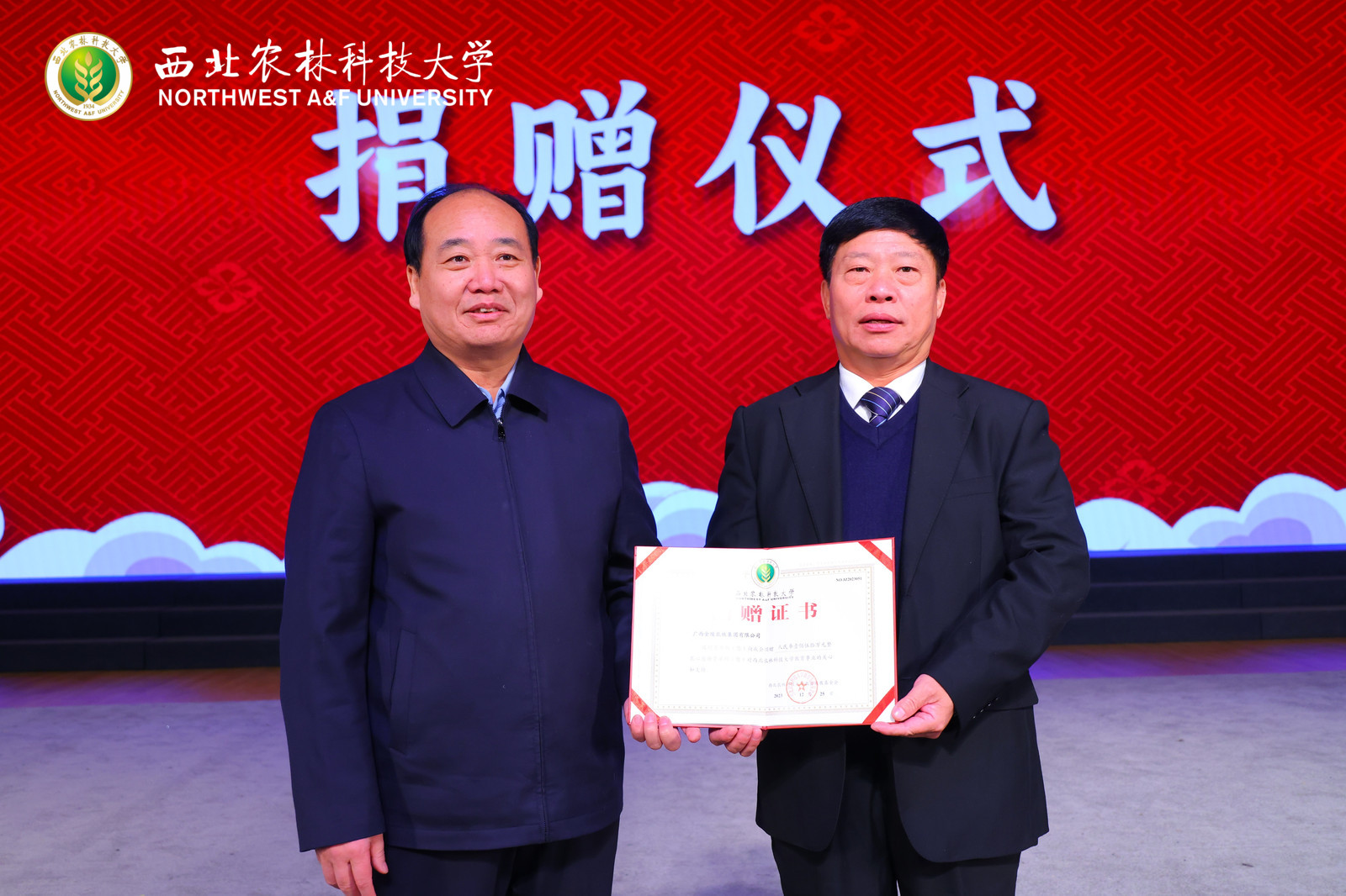 陈玉林副校长代表学校为金陵农牧集团有限公司、西安吉匹替科技有限公司颁发捐赠证书
