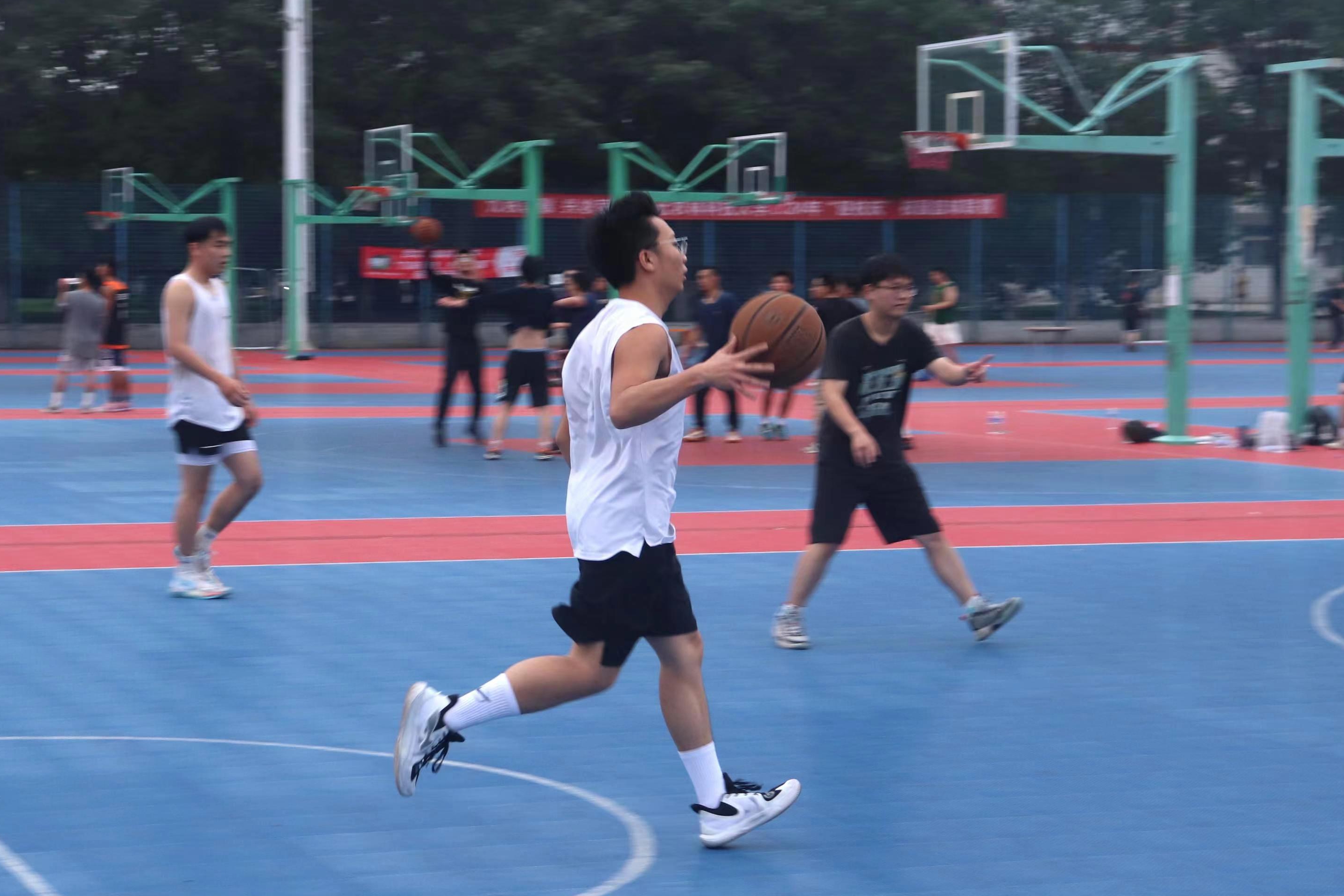 哨响跳球,毕业生代表队率先突入内线拿下2分,教职工代表队毫不示弱,连续中投得手打出一波6:0攻击波取得领先。随后毕业生代表队长传快攻、挡拆顺下,战术应接不暇,教职工代表队三分飙射、拉杆上篮,进攻绝不手软。比赛如火如荼,学院教师们在赛场上肆意奔跑,仿佛也回到青春岁月,挥汗如雨、敢抢敢拼,双方你来我往、互不相让,抢断、快攻、盖帽、三分,双方交替领先,场下观众欢呼如雷。