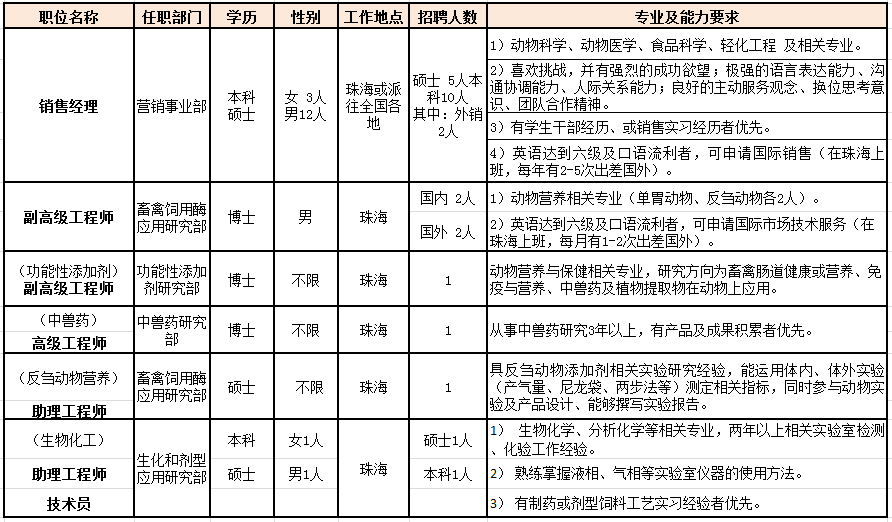 招聘地点:动科学院107会议室