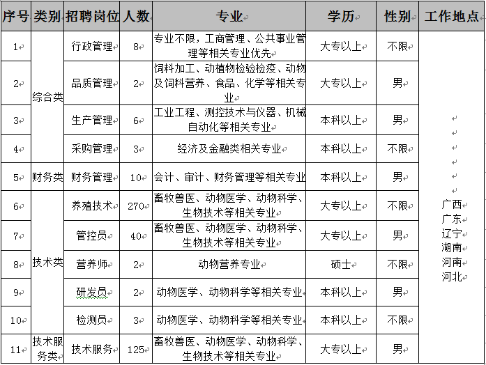 扬翔股份2016年校园招聘总体需求