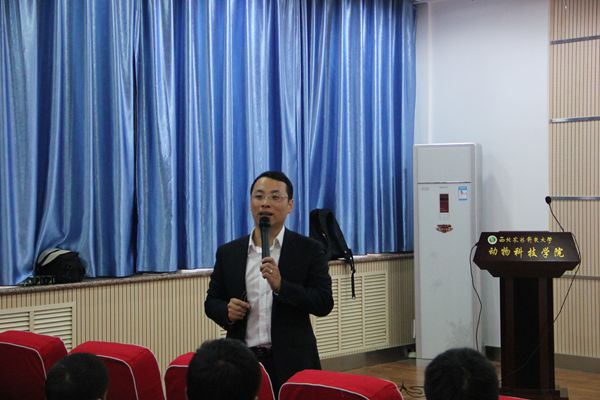 10月17日上午,扬翔股份有限公司刘彦来在动科楼107会议室为我院学子举行行业前景交流会。扬翔股份有限公司招聘经理刘彦来等一行三人、学院专兼职辅导员及2016届毕业生参加了此次交流会。
