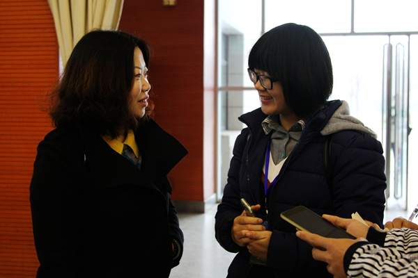 学院党委副书记王晓娟与学生亲切交谈