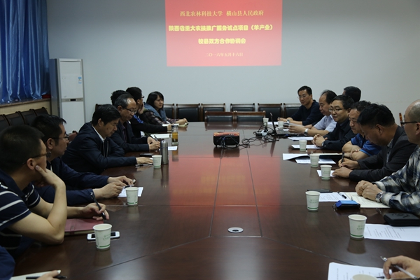 近日,陕西省重大农技推广服务试点计划(羊产业)试点项目对接会在我校召开,横山县副县长杜修洲、县畜牧局局长张秉忠、副局长高文瑞等横山县领导代表地方政府参会。钱永华副校长会见了杜修洲一行,校科技推广处、羊产业项目首席专家、区域站负责人及西北农林科技大学绒毛用羊科研创新团队老师、学生共50多人参加会议,会议由动科学院副院长昝林森教授主持。