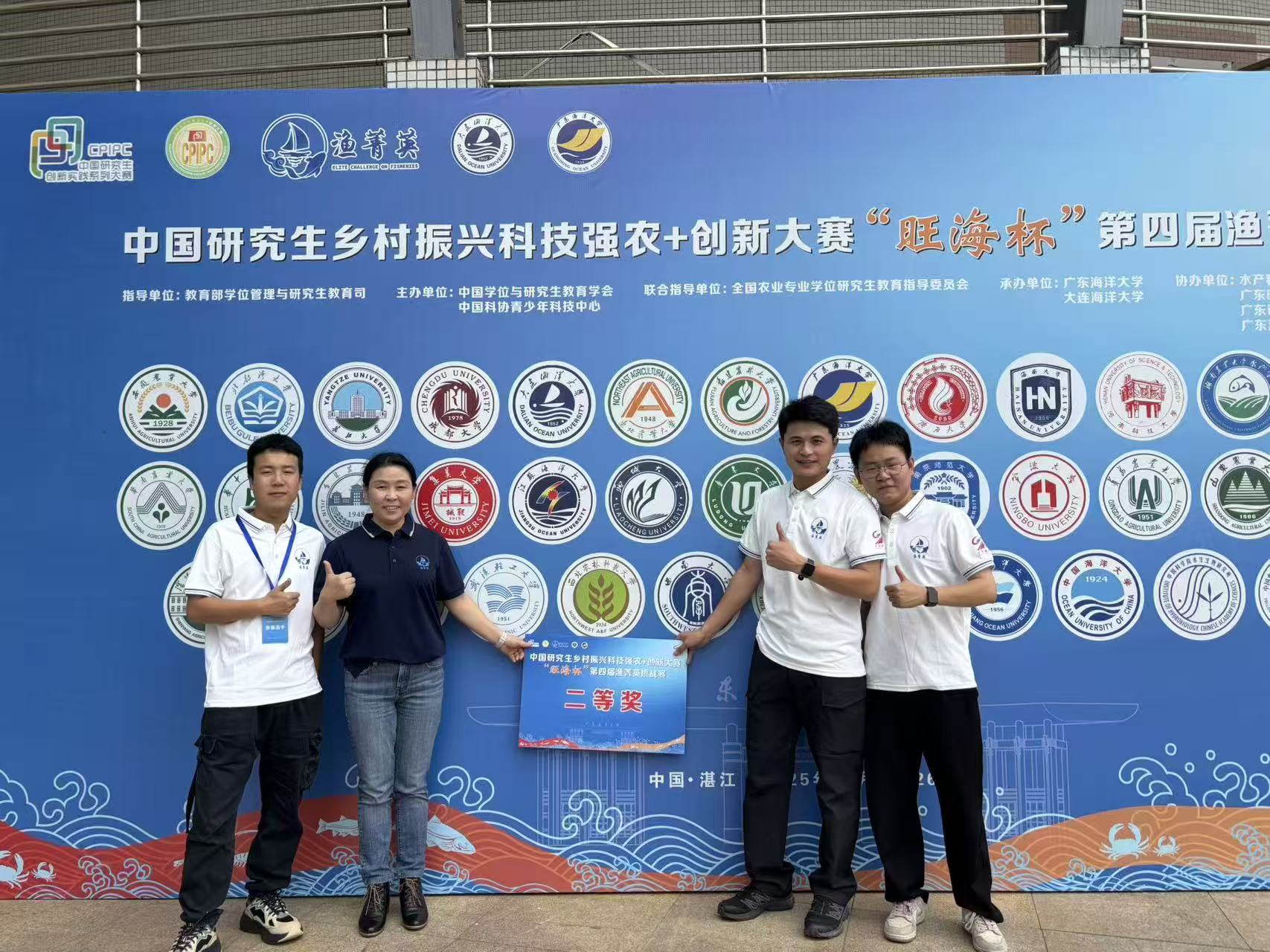 10月24日至26日,教育部学位管理与研究生教育司指导、中国学位与研究生教育学会、中国科协青少年科技中心主办的面向在校研究生的全国性赛事第四届渔菁英挑战赛在广东海洋大学举办。本次大赛汇聚了全国41所顶尖高等农林院校的440名优秀的研究生。我院由凌飞副院长担任领队,水产系刘海侠副教授担任指导老师,研究生刘若凡、张義林和袁想通组成的参赛队伍参加比赛。经过激烈角逐,最终获得团体二等奖的优异成绩。